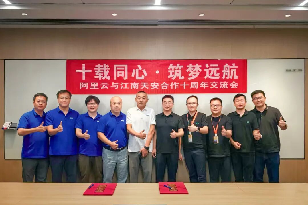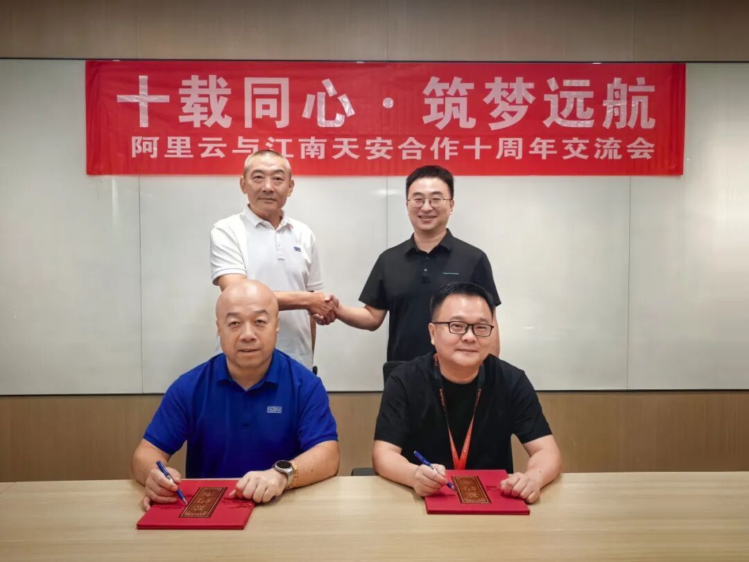2025年9月26日云栖大会期间,恰逢江南天安与阿里云战略合作十周年,双方于当日隆重举行“十载同心·筑梦远航”回顾与战略签约会。江南天安总经理胡杰、阿里云智能集团云安全产品线负责人欧阳欣等嘉宾共同出席活动。双方回顾了携手共进十年历程,充分肯定合作成果,探讨未来发展方向并签署下个阶段战略合作协议。基于江南天安在云密码技术和应用领域的深厚积累与阿里云强大的平台优势,双方将继续深化合作,共同打造云上密码应用新标杆,为推动行业安全应用和发展注入新动力。